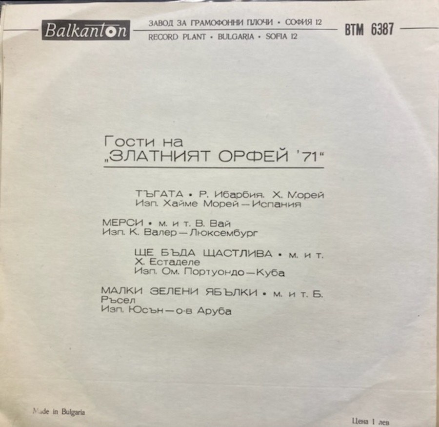 Хайме Морей*, Кати Валер*, Омара Портуондо*, Юсън* – Златният Орфей '71 / Guests To The Golden Orpheus 71
