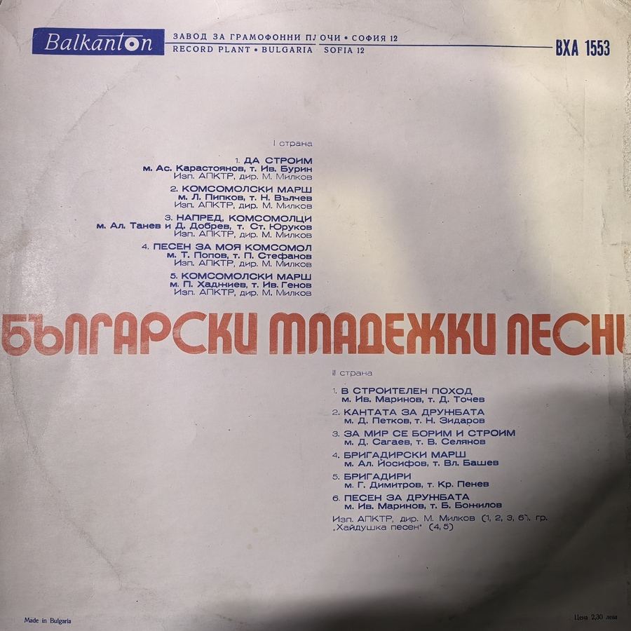 код: ВХА 1553 / Формат: LP / Лейбъл: Балкантон
