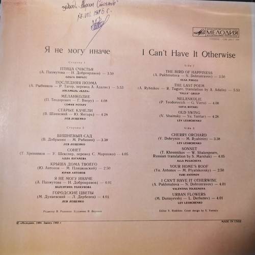 Лейбъл: 	Мелодия